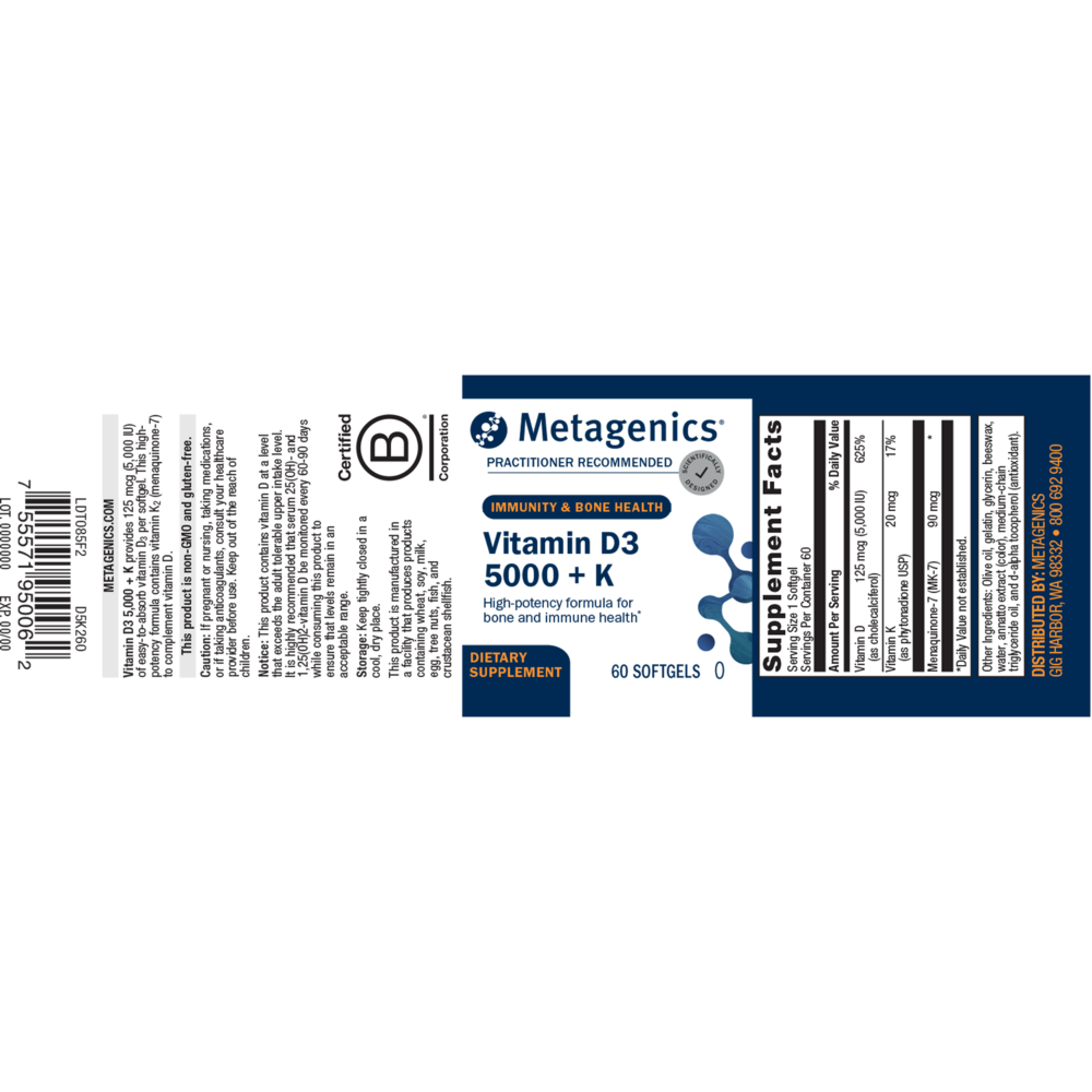 Experimenta la sinergia de D3 + K con Metagenics Vitamin D3 5000 + K - la fórmula de alta potencia para salud inmunológica, ósea y cardiovascular óptima.