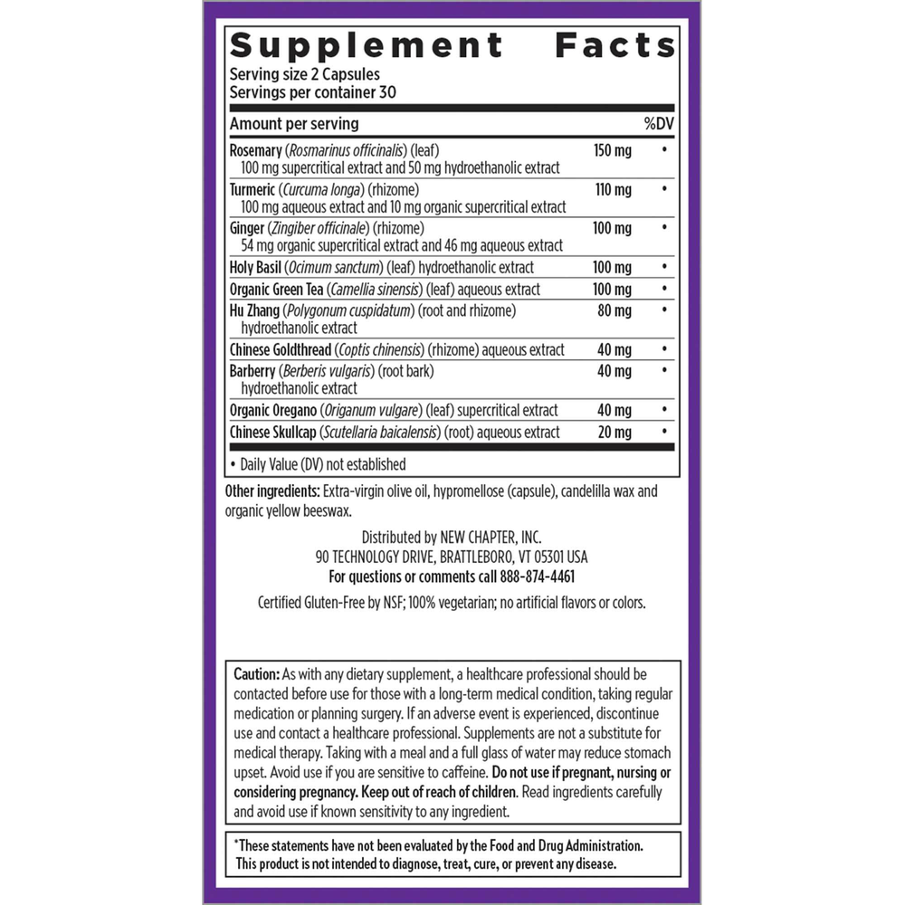 Formulado con hierbas cuidadosamente seleccionadas incluyendo: Romero, Cúrcuma, Jengibre, Té Verde, Albahaca Sagrada, Hu Zhang, Orégano Chino, Berberina, Escutelaria Baical y Escutelaria.